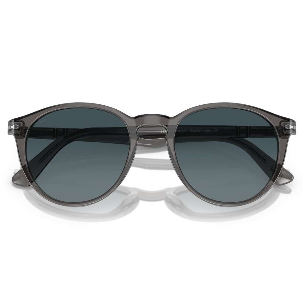 Ce modèle Persol est en acétate Transparent Grey et, est équipé d'un verre minéral gris polarisé avec anti-reflet sur sa face intérieure